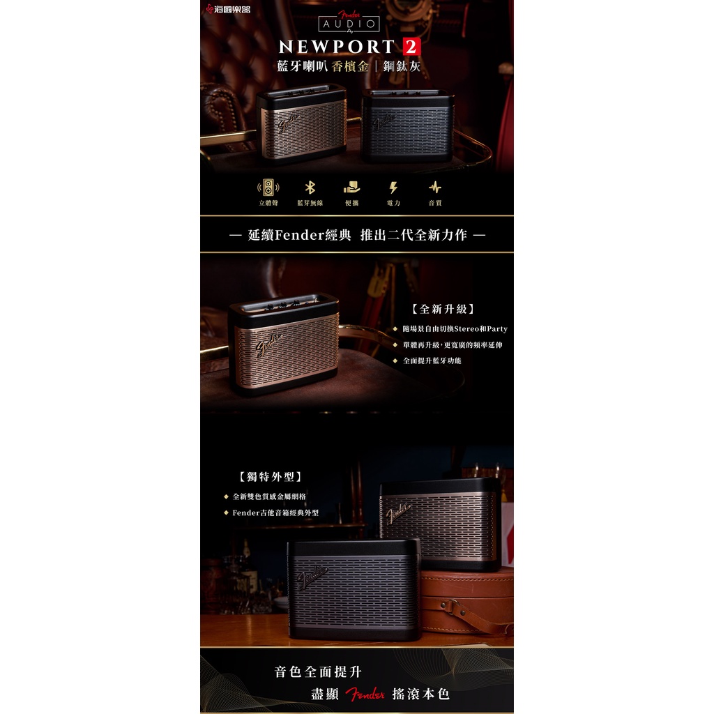 台灣公司貨可自取不是水貨及平輸 Fender Newport 2 二代升級 無線 充電式 可攜帶 藍牙喇叭 視聽影訊
