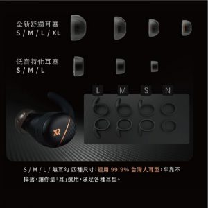 配件:耳機*1 充電盒*1 Type-c線*1 耳塞*4組(S/M/L/XL) 低音耳塞*3組(S/M/L) 矽膠耳勾*3+無耳勾矽膠套 保卡*1 說明書*1