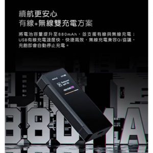 有線+無線雙充電方案 | 將電池容量提升至880mAh,並支援有線與無線充電;無線充電兼容Qi協議,充飽即會自動停止充電。